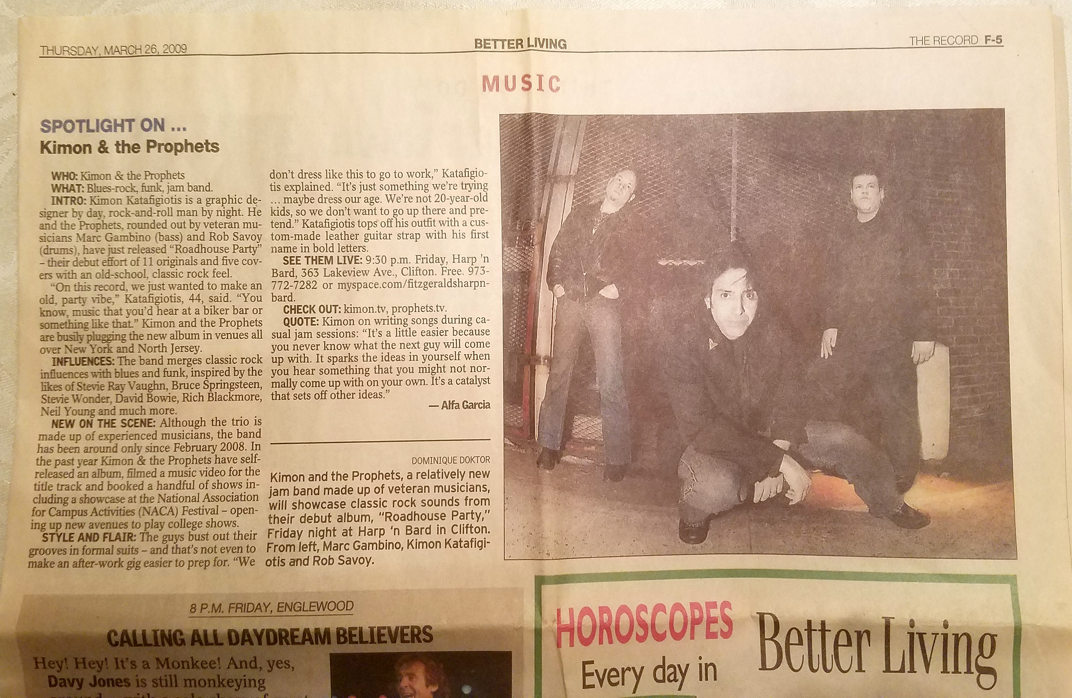 "The aptly titled new Kimon & The Prophets album truly is a "Roadhouse Party", featuring 11 originals and 5 covers (of songs from Jimi Hendrix, David Bowie, Nick Lowe/Elvis Costello, and Don Henley). The originals have a really fun funky blues vibe going on that’s a departure from previous Kimon albums, but in a lot of ways the whole band seems more comfortable on this album then any of the previous ones I’ve heard.